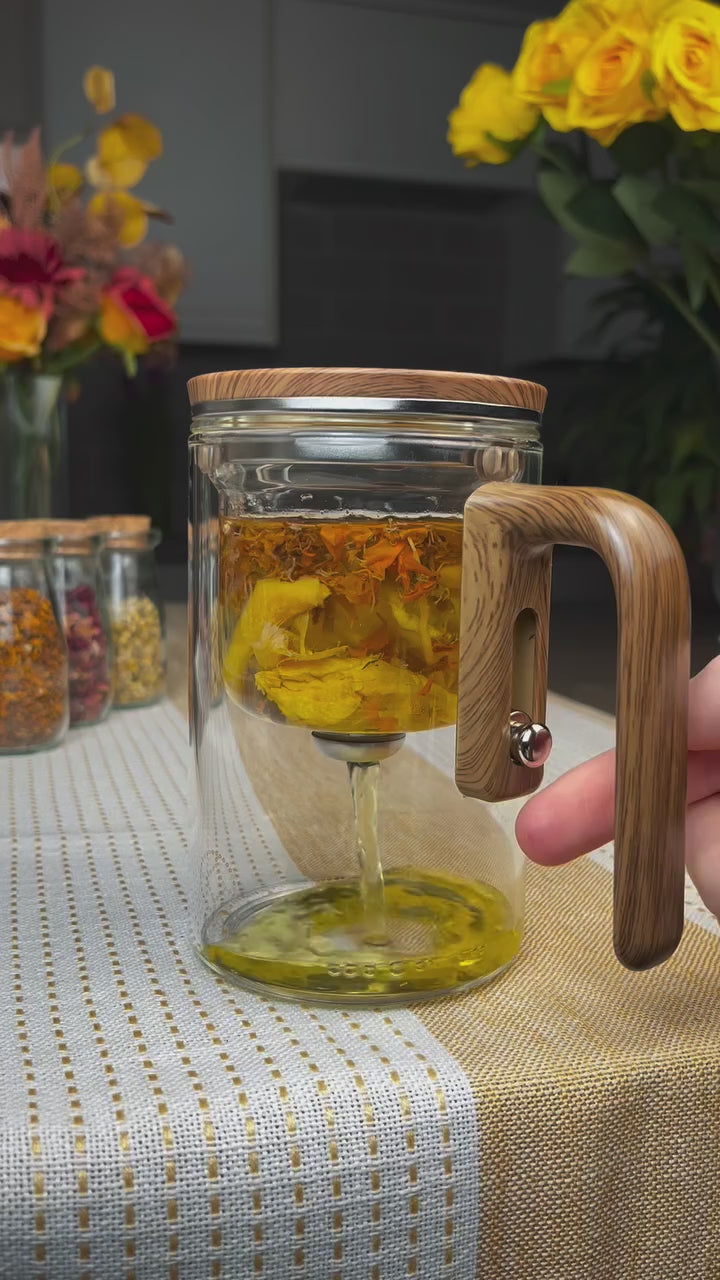 With a simple press, watch as your tea strains perfectly into the glass pot